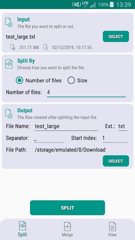 File Splitter & Merger - это бесплатный инструмент для Android, который позволяет разбить любой файл на более мелкие файлы или объединить несколько файлов в один.
