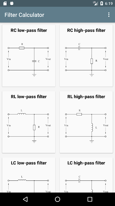 Информация Калькулятор фильтров (RC, RL, LC, RLC) APK