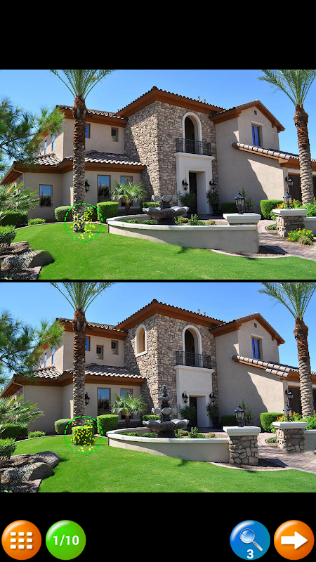На каждом уровне можно использовать 3 подсказки для поиска 10 отличий.