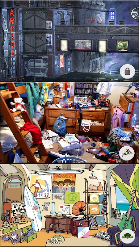 Найти скрытые объекты в каждой уникальной стадии до времени иссякнут. Объекты будут находиться в разных местах каждый раз, когда вы играть сцену. Есть близко к fifity всего этапы, которые все очень уникальный друг от друга от мультфильмов чертежи, реальных фотографий, эскизов, картин, карт мира, древних и современных символов, и многое другое!