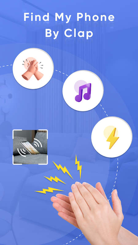 Найти телефон довольно неприятно, если вы регулярно теряете гаджет. разместите это приложение «Найти мой телефон» с помощью Clap Flash и легко найдите потерянное устройство, просто хлопнув в ладоши. Хлопните и найдите потерянный телефон с помощью приложения Find My Phone от Clap Flash. просто хлопните в ладоши и легко найдите телефон с помощью музыкального оповещения. Мы разработали это приложение с учетом всех требований, позволяющих легко найти устройство. Если вы потеряете устройство ночью, вы легко сможете его найти, хлопнув в ладоши или с помощью фонарика. Легко определите точное место, где в последний раз находилось ваше устройство, с помощью приложения Find My Phone от Clap Flash.