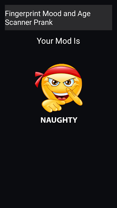 Fingerprint Mood and age detector prank is not determined by your face. Fingerprint Mood Scanner Prank App is a prank app - does not really detect if a person happy or angry or sad. Fingerprint Face Mood Scanner Prank App is only for entertainment purpose to play with your friends. Make your friends fools with it. Result simply Turn On the Happy or Angry or Sad depend on the calculation of your finger scan. This Fingerprint Face Mood Scanner Simulator is a fun game which simulates a scanner for detecting Happy or Angry or Sad. Prank and make fun of your friends, kids or others by getting them to think you can detect if they are happy or angry or sad to you. Activate the prank mode to hide the instructions, and fool everyone with this fake Fingerprint Mood Test Scanner.