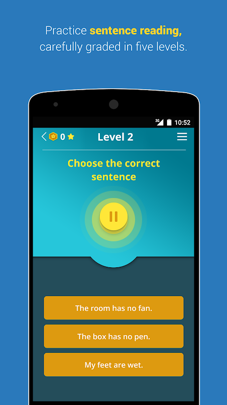 In this app, there are three reading activities. Choose Words, Choose Sentences, and Make Sentences.