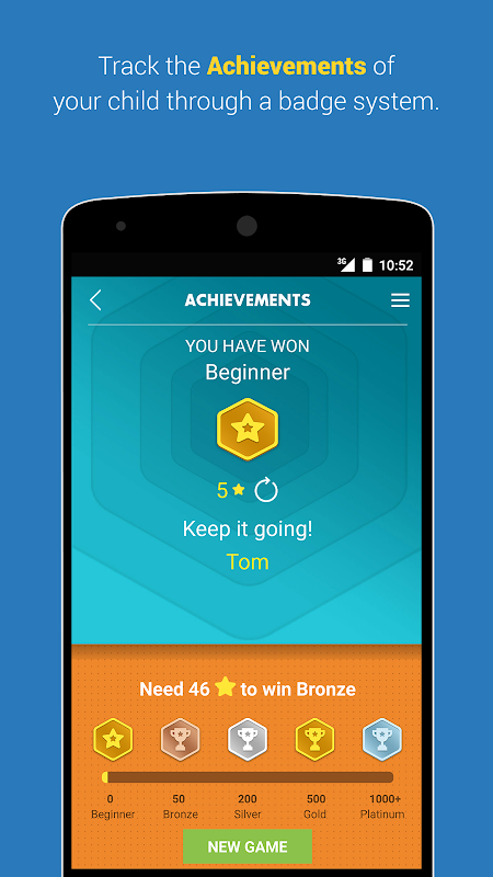 You can monitor the progress of your child (or if you are a teacher, you can monitor the progress of your class), using the accuracy and average time taken metric given in the scorecard. The badge system (silver, gold, platinum) provides a quick preview of your child’s progress.