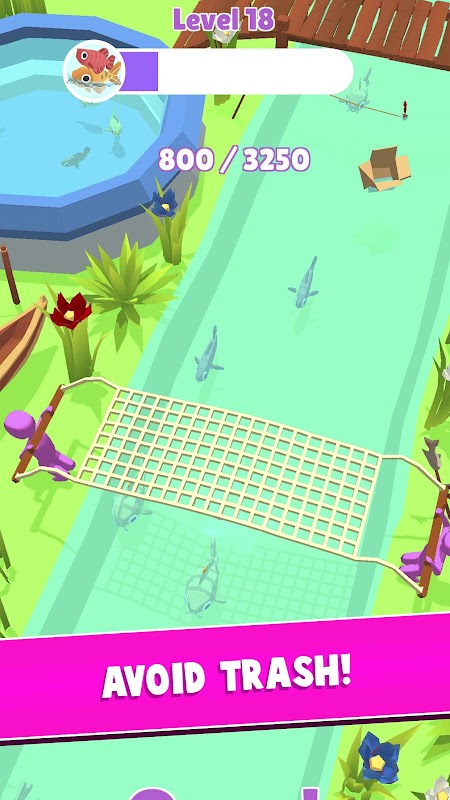 Drag the net full of fish while avoiding debris and bombs.