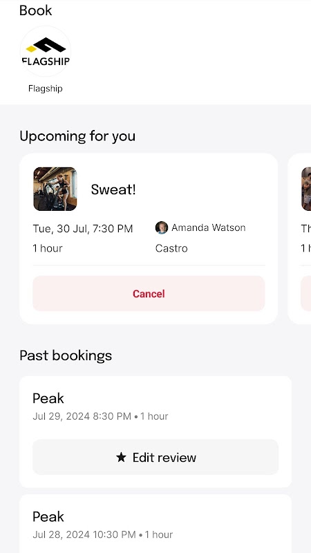 Приложение FLAGSHIP — это универсальное приложение для бронирования во время вашего фитнес-путешествия во FLAGSHIP. С помощью приложения вы сможете бронировать новые очные занятия, видеть забронированные вами занятия и управлять ими. Вы также сможете редактировать данные своей учетной записи и карту, хранящуюся в приложении. Приложение поддерживает видимость расписания всех доступных занятий. Нажмите на вкладку классов, чтобы изучить и начать свое фитнес-путешествие вместе с нами.