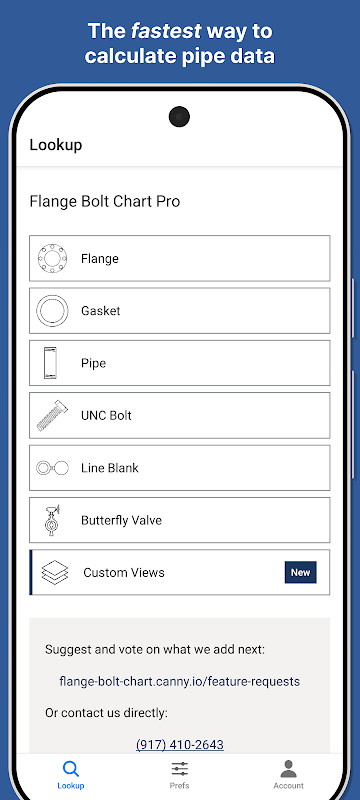 2. Мгновенный поиск данных. Просто введите необходимые входные данные (например, номинальный размер трубы и класс фланца), и приложение мгновенно заполнит правильные значения для выходных данных фланца, трубы или болта, которые вы ищете.