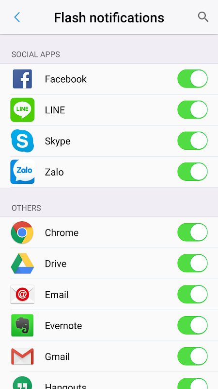 - Выберите любое приложение, в котором вы хотите включить флеш-оповещения, и ничего не пропустите