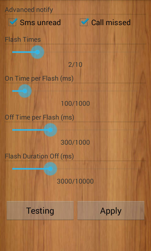 Вызов и SMS флэш оповещенияМисс вызовов и SMS непрочитанных уведомитьФонарик в ночное время