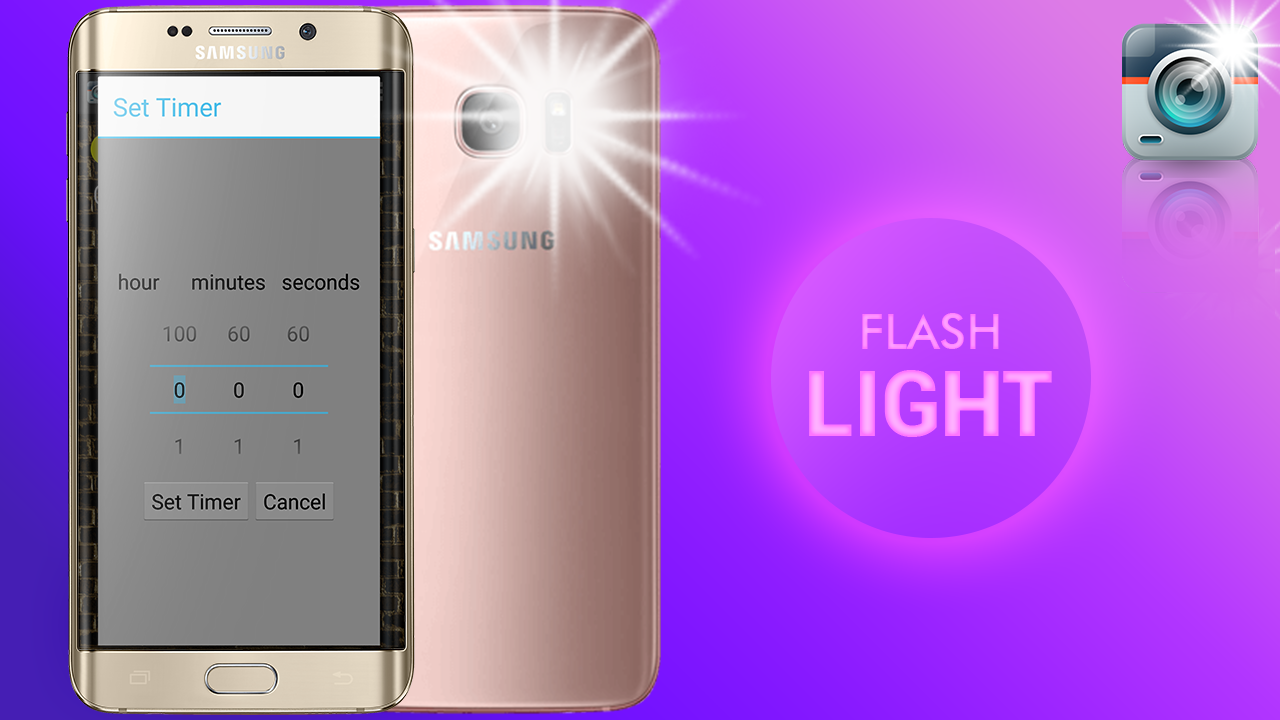 • Set timer option is use to set the time on android flashlight app for how much time you want to on the mobile torch light. Enter you time and click on set time.