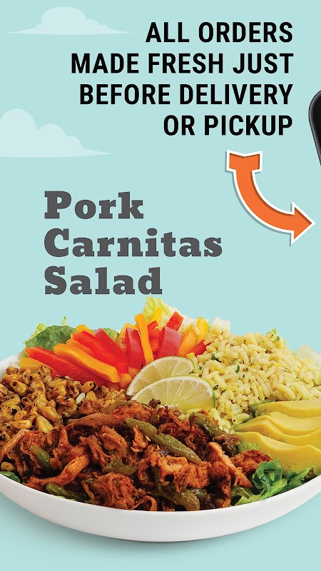 - Красиво приготовленные салаты, включая Chipotle Lime Pork Carnitas,