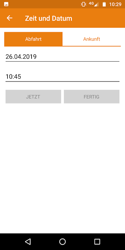 2. Unter Abfahrt entweder „Jetzt“ wählen oder die gewünschte Zeit und das Datum eingeben
