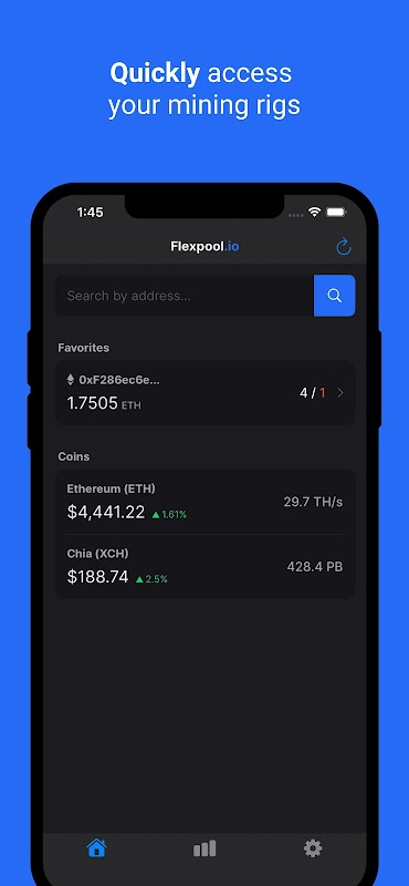 Flexpool Android предлагает всю мощь нашей веб-платформы прямо в вашем кармане и даже больше! Внимательно следите за своими майнерами, сохраняя избранное для быстрого доступа. Отслеживайте личную и общую статистику. Просматривайте подробную статистику по вознаграждениям, платежам, блокам и воркерам. Все это и многое другое пришло на ваше мобильное устройство.
