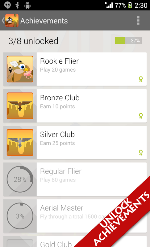 Unlike the other clones out there on Google Play, this bird game has awesome and original graphics. Challenge yourself and your friends to score the highest and get to the top of the global leaderboard. Seems tough to play? Don't worry you'll impove with practice.