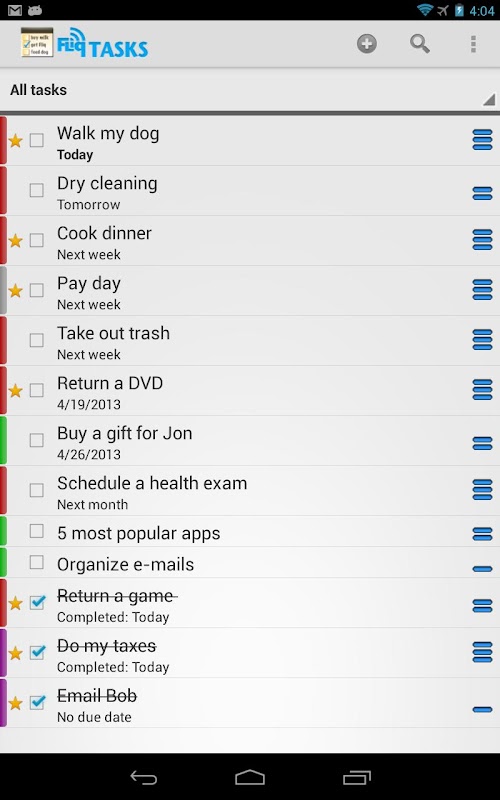 Создавайте, редактируйте, сортируйте, раскрашивайте, классифицируйте, защищайте паролем и организуйте свои задачи. Сортируйте задачи по приоритету, категории, сроку выполнения или дате завершения. Показать все задачи или отфильтровать для просмотра по категориям, те, которые вы отметили звездочкой, или чтобы показать только задачи, которые были выполнены.