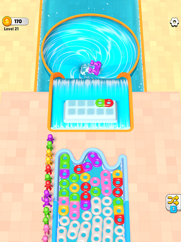 Приготовьтесь к всплеску веселья в «Floaty Jam», красочной игре-головоломке, где ваша цель — сопоставить человечков с их надувными кругами того же цвета и отправить их на водную горку!