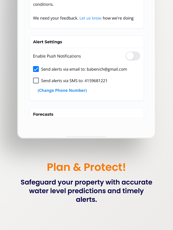 - Предупреждения о наводнениях и рекомендации: получайте оповещения, когда существует риск наводнения.