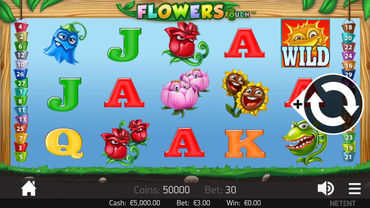 It may not be your everyday plant life, but with double symbols, stacked wilds and free spins up for grabs, there’s every reason to become acquainted with the funky flora in video slot Flowers. Flowers’ standout feature is its double symbol system. Double symbols count as two regular standard symbol, offering comparatively huge pay outs on regular combinations. Indeed, match five double-rose symbols, and you’ll win 1,000 coins! Sun wilds can substitute for any regular symbol, and stacked wilds appear during free spins. Land four or more cloud free spin symbols to receive up to 30 free spins and a x3 multiplier. Five wilds wins you 2,500 coins.