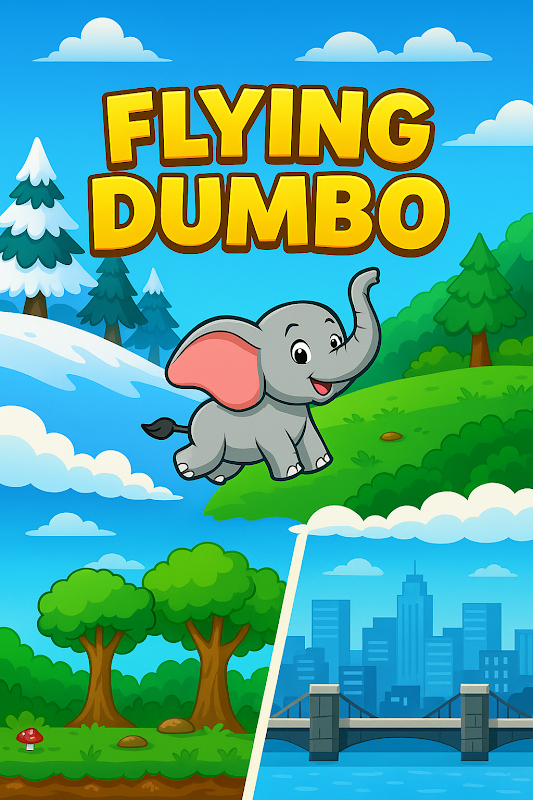 Flying Dumbo — это 2D-игра с бесконечными возможностями и механизмами полетов.