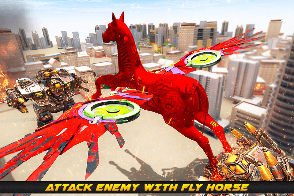Utilize it as flying Action robot games and Horseback riding games to kill and smash all the rivals of Robot War games like the flying Robot interactive Horse games. After having face to face contact of this new simulation, you will forget the simple actions of flying dragon and Flying car robot games and robot war games 2020. All other transforming games can never cover more tough situations of fighting with other robots and conversion into unicorn Flying Horse, Flying Dragon or other War transformation robot/ interactive horse games. Feel the difference of transformation games and robot fighting games with this real Flying Horse Robot Transforming games as warrior games. Step forward to unicorn Horse Paradise and choose the best one cause unicorn horses do not exist on earth with flying skills. You are fighting in the transformer war so there is no chance to live without war robots. Car transformations and other Police dog transformation are very common nowadays, so Criminal Horse Chase and fighting robot is the new idea of 2020 action & adventure games.