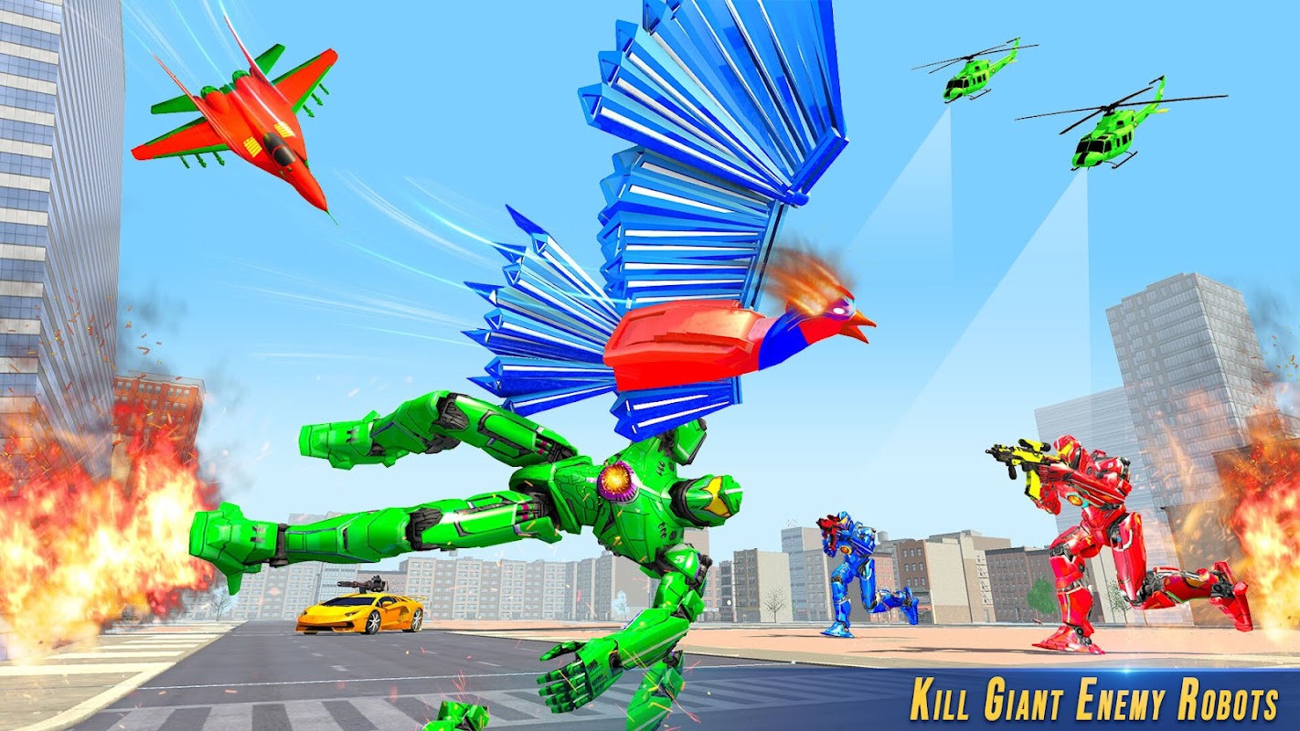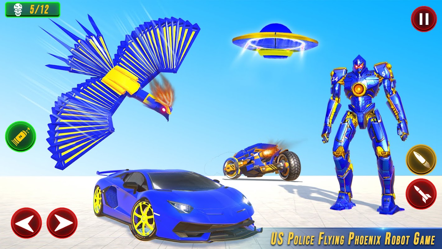 В этой игре-трансформере летающей полицейской спасательной машины США и летающего робота-птицы Феникса вы сразитесь с вражескими роботами в игре-трансформере летающего полицейского робота. Пришло время спасти город и убить всех криминальных гангстеров в играх-трансформерах с летающими роботами-героями. Играйте за американского полицейского робота-героя, спасайте невинных людей от вражеских роботов и постарайтесь быть более взволнованными, чем летающие роботы-спасатели, и получите спасение от сил симулятора робота-супергероя в этой криминальной игре-погоне за спасением города. В игре о вождении полицейского автомобиля в США вам предстоит сражаться в роли летающего робота-героя и уклоняться от преступников из города Майами в роли полицейского преследователя, спасающего летающего героя, где вы должны показать свои лучшие навыки выживания настоящего робота-супергероя игр-трансформеров Феникса 2021 года.