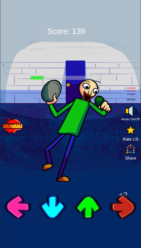Что делать в игре FNF Baldi Test? все просто! Вам необходимо набрать максимально большое количество баллов. Для этого нажимайте на стрелки на экране вашего устройства, после того как начали игру. После каждого нажатия герой споет определенную ноту и совершит определенное движение, и вы будете получать баллы. Результат в 1500 баллов считается хорошим итогом игры. Если у вас получилось набрать более 2000 баллов - вы великолепно играете в FNF Baldi Test.