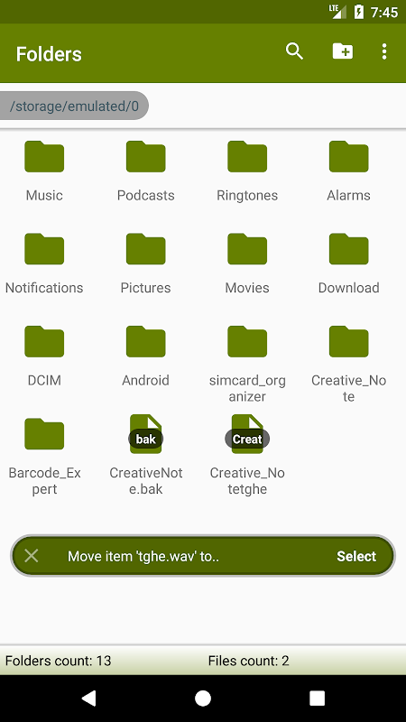 "Folders" - Обзор ваш Android Memory Device Простой и эффективно.
