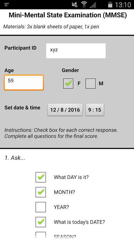 Мини-Mental State Examination приложение на Перейти- для домов престарелых или передвижных клиник