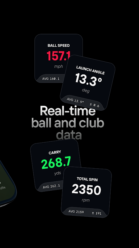 * Расширенный анализ ударов. Получите более глубокое понимание каждого удара с помощью подробной визуализации, включая круги рассеивания, маркеры расстояния переноса, таблицы с большим количеством данных и интуитивно понятные плитки, которые помогут вам понять ваш замах, как никогда раньше.