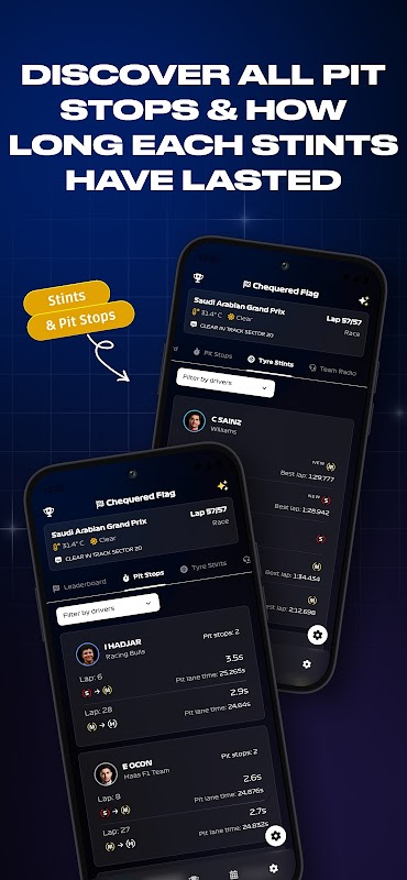 Отслеживайте происходящее с помощью таблиц лидеров в реальном времени, данных о времени, анализа пит-стопов, стратегий использования шин, обгонов и командной радиосвязи. Будьте в курсе обновлений контроля гонки, штрафов и турнирной таблицы, а также читайте комментарии в реальном времени и официальные документы для более глубокого контекста.