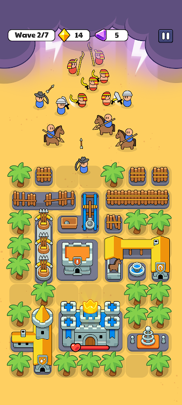 • Генераторы юнитов: казармы, лагерь лучников, конюшни и башня магов призывают мечников, лучников, всадников и магов — у каждого из них есть чёткая роль на поле боя.