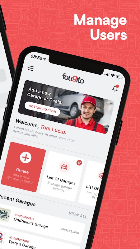 Приложение Fougito Squads создано для того, чтобы его команда тратила меньше времени и усилий на запись новых дилеров Garage и запчастей в соответствующие каталоги. Это приложение Easy-To-Go с удобной навигацией для персонала, позволяющее вести регистрацию для дилеров.