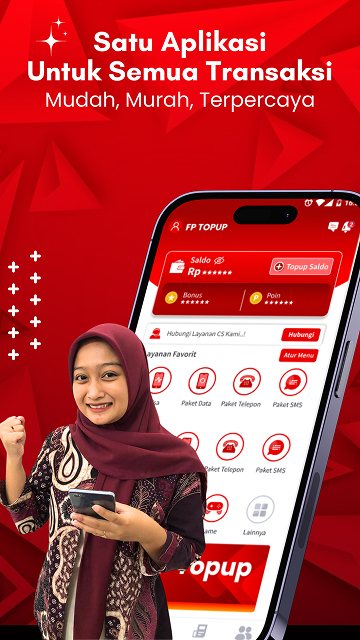FP Topup — это цифровое приложение, которое предлагает пополнение мобильного счета, тарифные планы, токены PLN и оплату нескольких счетов по всей Индонезии.