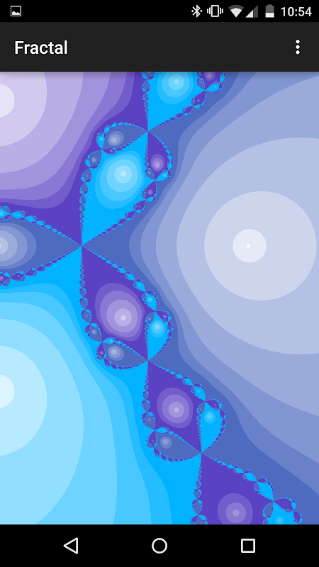 Приложения для расчета и отображения фрактальный образ, основанный на методе Ньютона. Вы можете расширить изображение, прикасаясь к экрану. Нажав кнопку меню, вы можете использовать некоторые функции, такие как изменение цвета и увеличить скорость и экономию изображения.