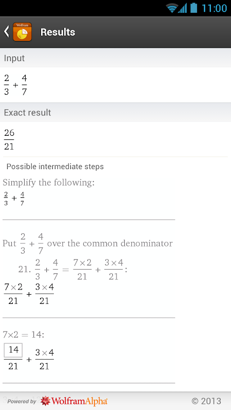 Ссылка Wolfram Фракции App опирается на вычислительную мощность Wolfram | Альфа суперкомпьютеров над 2G, 3G, 4G или Wi-Fi соединение.
