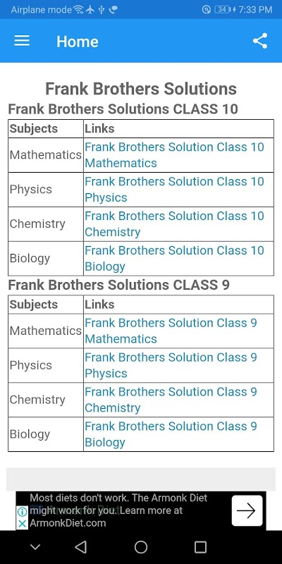 A simple app for frank brothers book solution of all classes