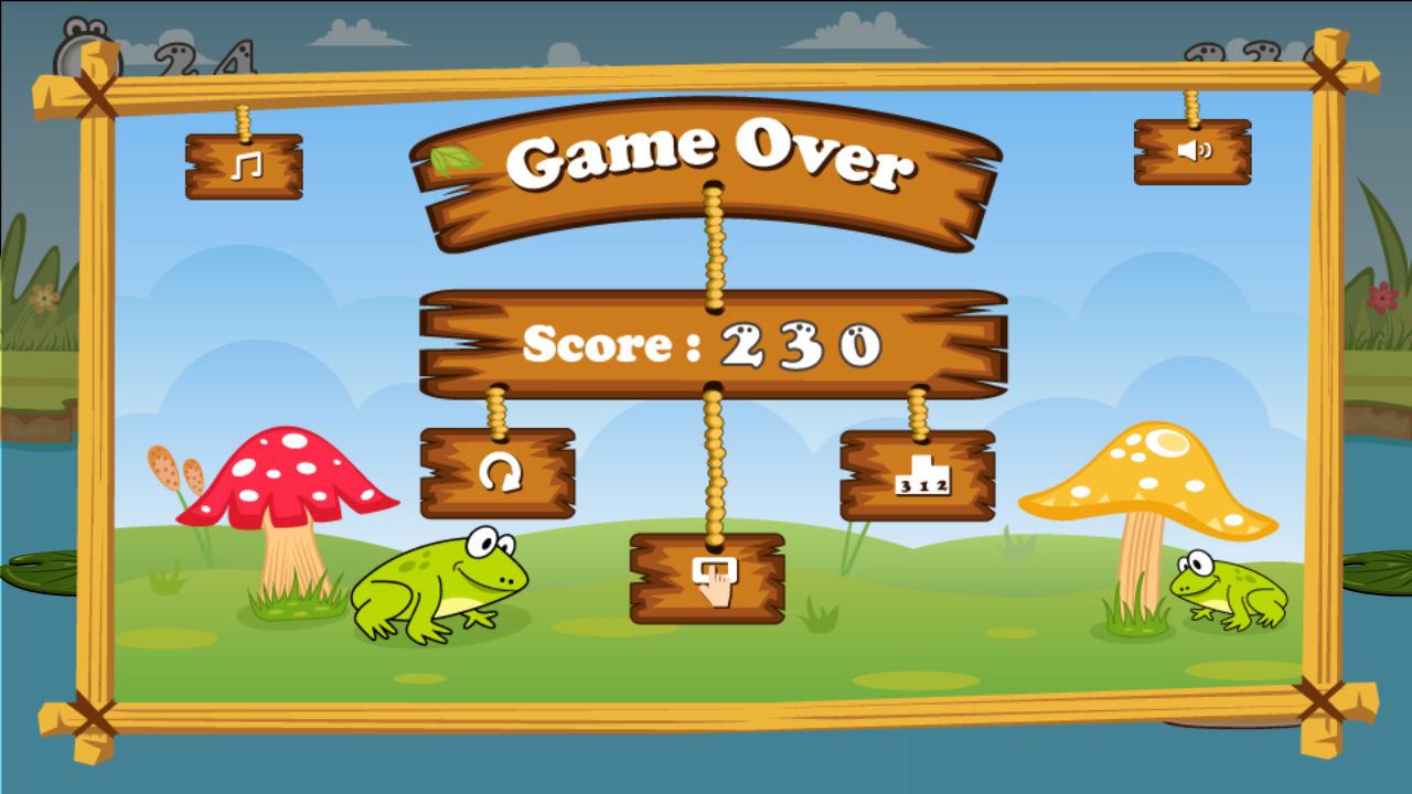 Игровой процесс состоит в том, чтобы помочь лягушке прыгать с листа на лист, нажимая кнопку одиночного и двойного прыжка, и заработать отличный результат.