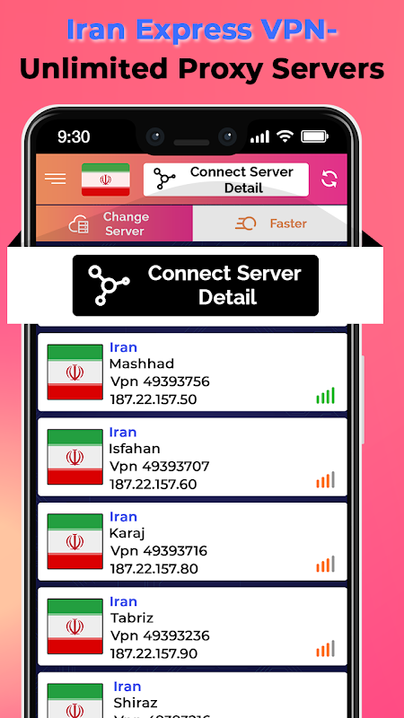 Enjoy and Protect your Privacy with free of cost using Free Iran Vpn-Secure Proxy Server. if you like application don't forget to share and rate us..!!
