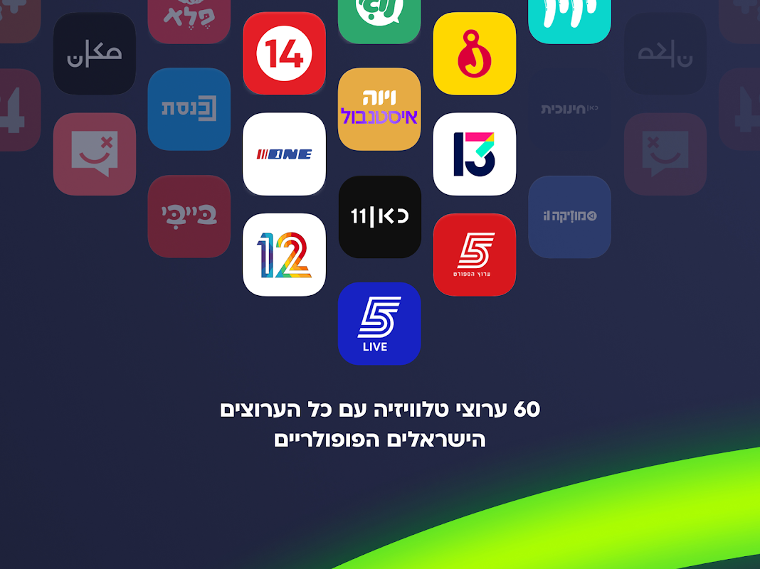 Присоединяйтесь легко, и вы сможете смотреть все израильские вещательные каналы, лучшие спортивные каналы, множество развлекательных и детских каналов, а также большую библиотеку Viadio, которая включает в себя множество израильских и международных фильмов и сериалов.