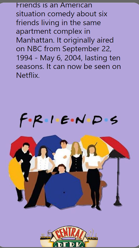 Это приложение об американском сериале ДРУЗЬЯ, где вы можете найти подробную информацию обо всех актерах и актрисах веб-сериала.