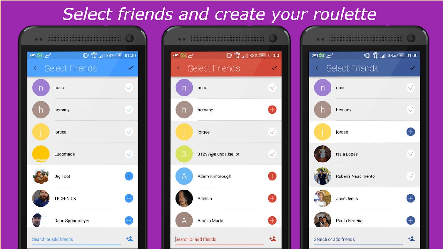 Friends Roulette is an app that gives you a nice way to put your friends into a roulette, add a question and mix it in order to find the lucky/unlucky one.