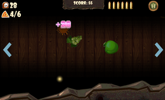 Try to hit as many fruits and small stars (each star you will get 100 points).