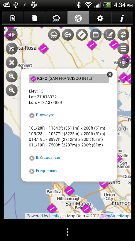 * Waypoints can be tapped to reveal the related data (e.g. lat, lon, ident).