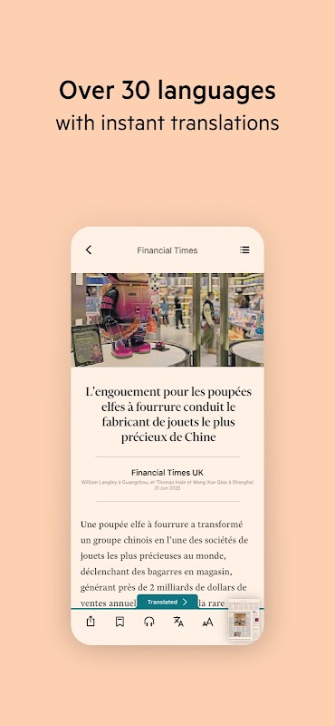 FT публикует репортажи из более чем 50 стран, переводы на более чем 30 языков, увлекательные эссе и эксклюзивные журнальные материалы, включая HTSI, FT Weekend Magazine и FT Wealth, — цифровое издание FT создано для тех, кто критически мыслит о мире. Планируете ли вы следующую поездку в культурную столицу, углубляете свои знания о мировых финансах или ищете свежие литературные и жизненные идеи, оставайтесь в курсе событий и вдохновляйтесь вместе с FT.