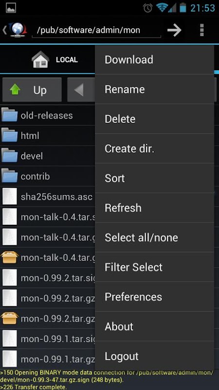 - SFTP (FTP через SSH). Вход с паролем или RSA / DSA OpenSSL (традиционный SSLeay PEM) или ConnectBot (PKCS # 8 PEM) секретный ключ.