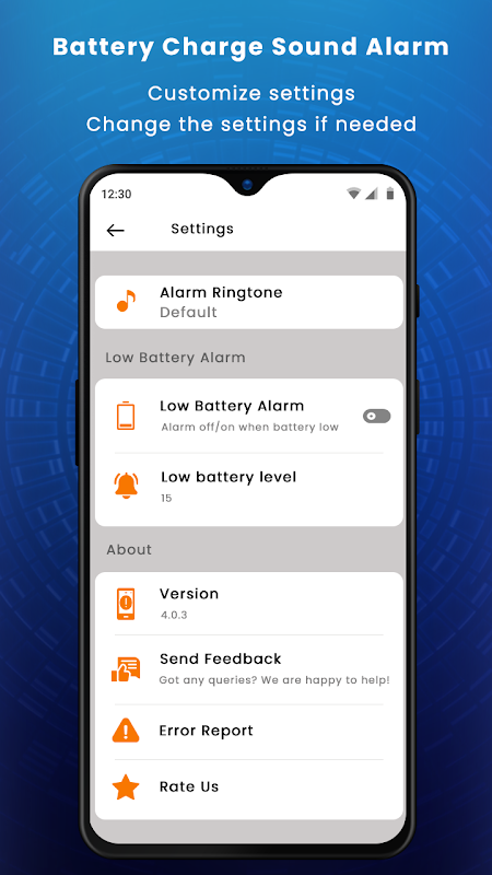 Эта сигнализация полного заряда батареи: приложение сигнализации заряда батареи уведомляет вас, когда ваша батарея полностью заряжена. Вы также можете выбрать уровень заряда батареи и множество настроек.