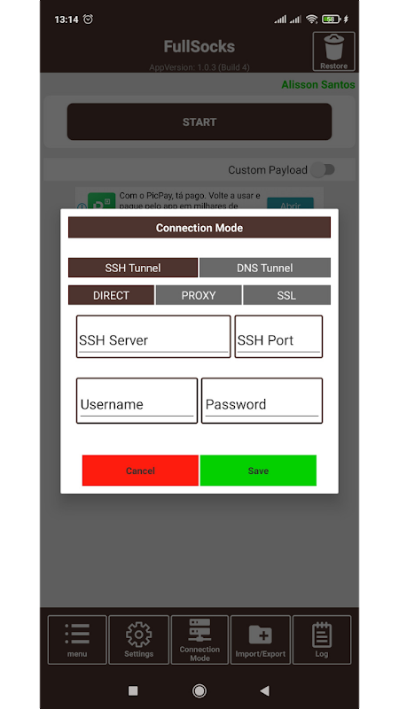 Este aplicativo permite burlar restrições locais e censura na rede, através de um TÚNNEL SSH.