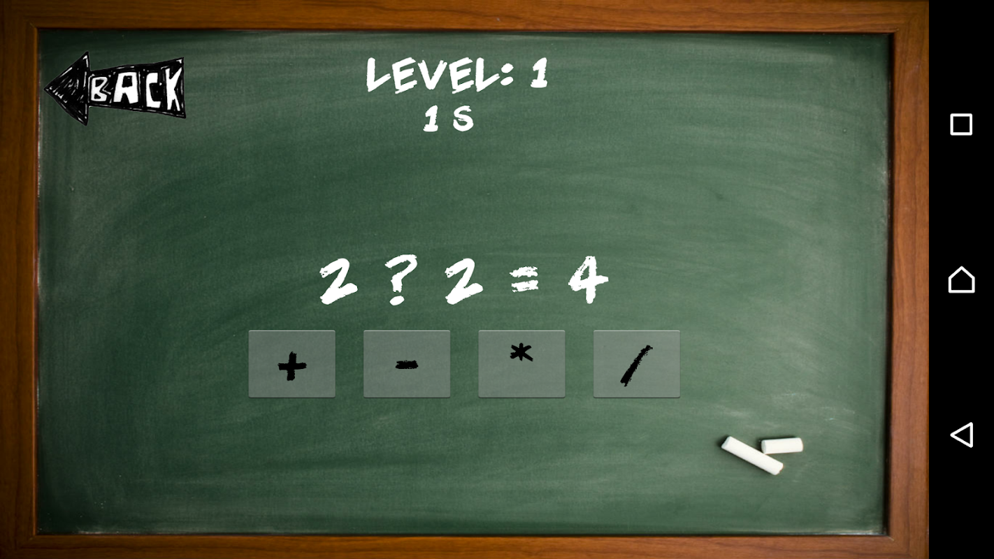 This Math Game is for everyone both kids and adults. Solve all math puzzle with a limit time challenge. Filling the gasp with Number or math symbols ( - Subtraction, + Addition, * Multiplication, / Division)