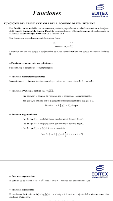 Esta aplicación de Editorial Editex S.A. representa cualquier función introducida por teclado, dándonos una visión sobre su continuidad, extremos e intervalos de crecimiento, entre otras cosas. Comprende los siguientes apartados:
