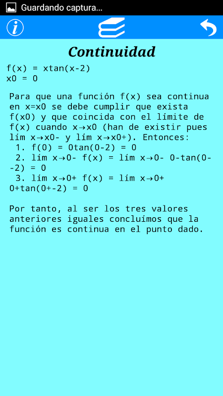 - Práctica: permite la representación gráfica de cualquier función introducida, así como comunicarnos si es continua en un punto, si es creciente/decreciente o cóncava/convexa en él, o si éste es objeto de un máximo/mínimo/punto de inflexión.
